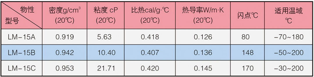LM-15系列冰河冷媒由聚硅氧烷改性而成。外觀為無色或淺色液體,不溶于水。具有生理惰性、良好的化學穩定性、凝固點低、使用壽命長等特點,對以金屬為代表的眾多材料,幾乎不會產生不良的影響,可應用于醫藥、化工、新能源等領域的制冷系統。