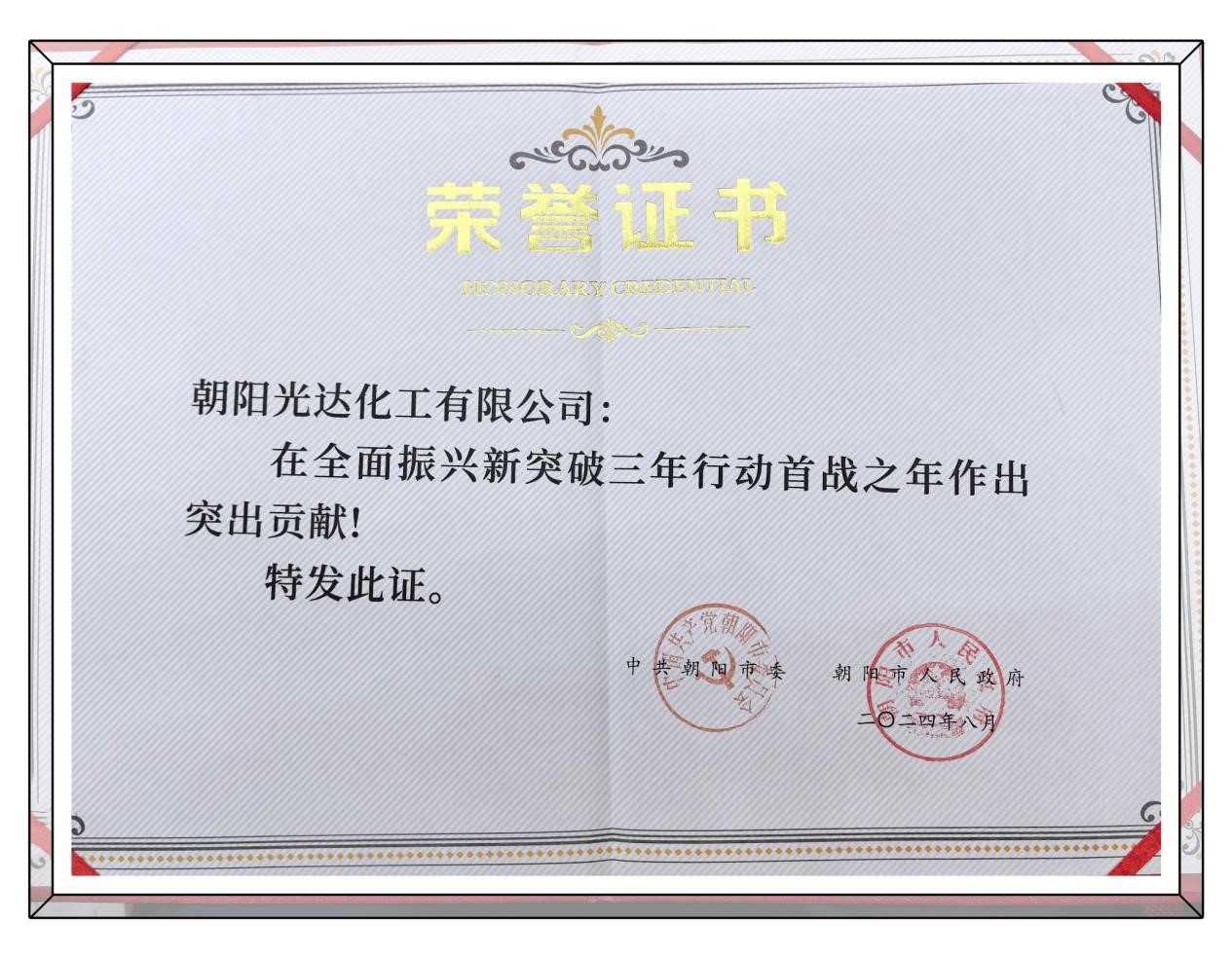此次表彰不僅是對(duì)光達(dá)化工過去成績的認(rèn)可,更是對(duì)其未來發(fā)展的一種期待。站在新的起點(diǎn)上,光達(dá)化工將以此次表彰為契機(jī),繼續(xù)發(fā)揚(yáng)敢闖敢干的精神,堅(jiān)持高質(zhì)量發(fā)展道路,為朝陽市乃至全國的新型工業(yè)化建設(shè)做出更大貢獻(xiàn)。